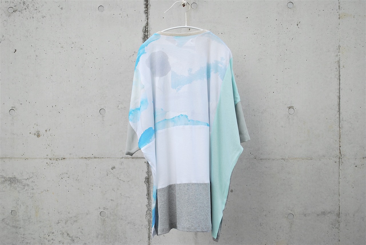 オリジナルテキスタイルの生地と天竺やモダールなどの柔らかい生地を使用した、オンラインショップ限定の一点物のカットソーです。