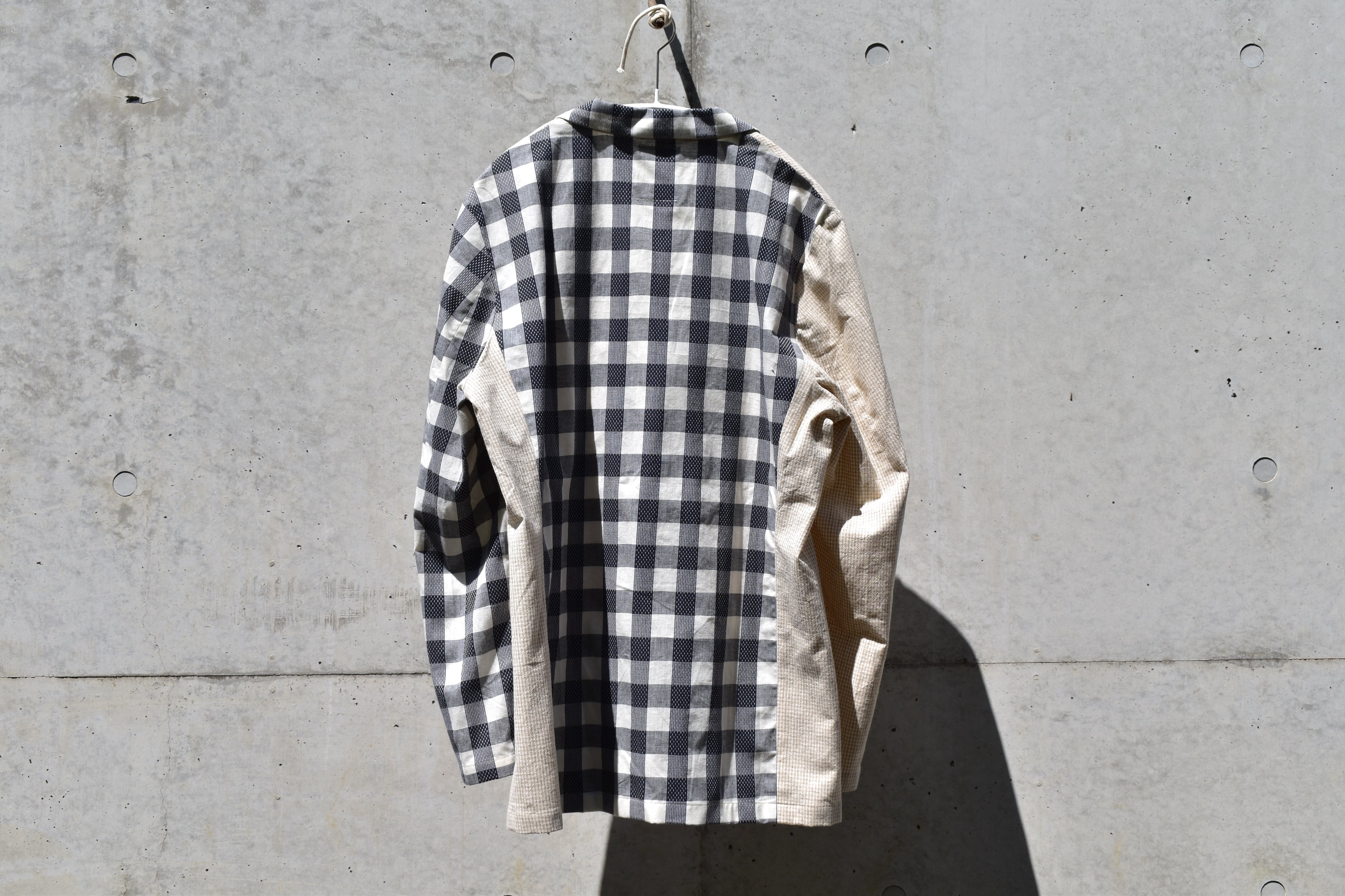 ベージュの柔らかなチェック生地とネイビーチェックの刺し子生地で