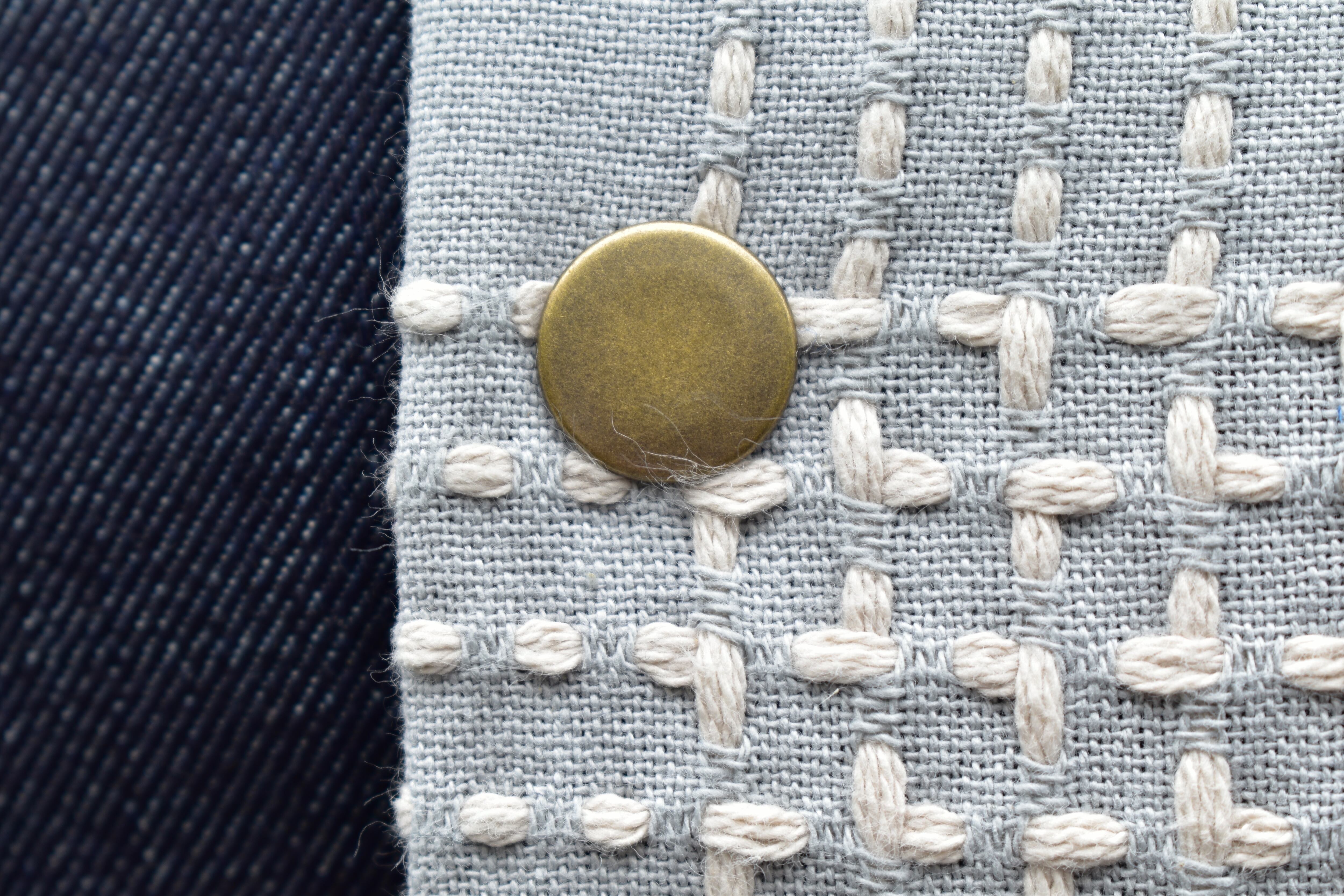 様々な色のデニムと刺し子生地を使い、
